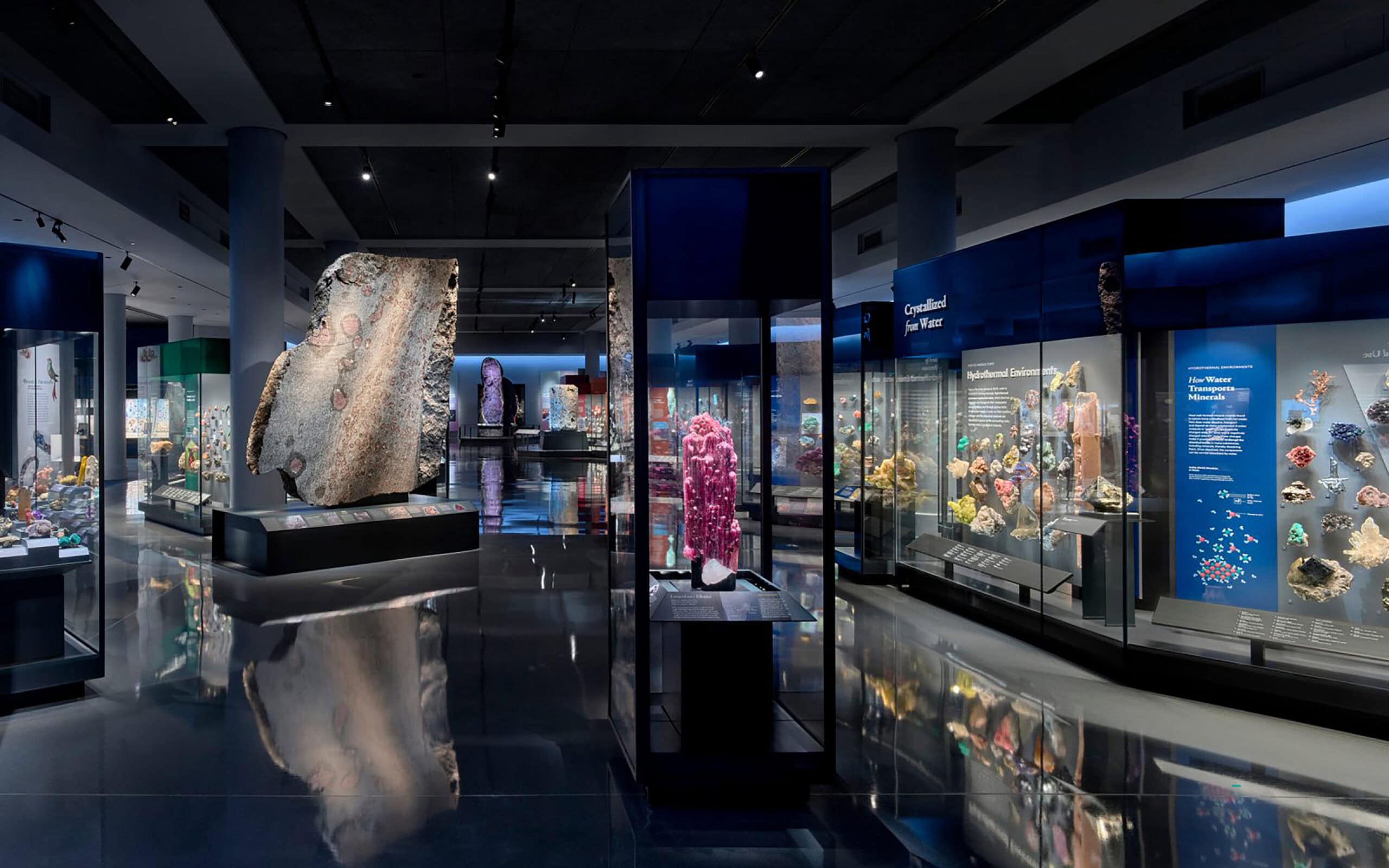 In order to enhance visitors’ experience with these gems and minerals, the Museum also incorporates large-scale media projections, interactive displays with time-lapse imagery, and colorful animations that all contribute to introducing visitors to the history and properties of these objects.