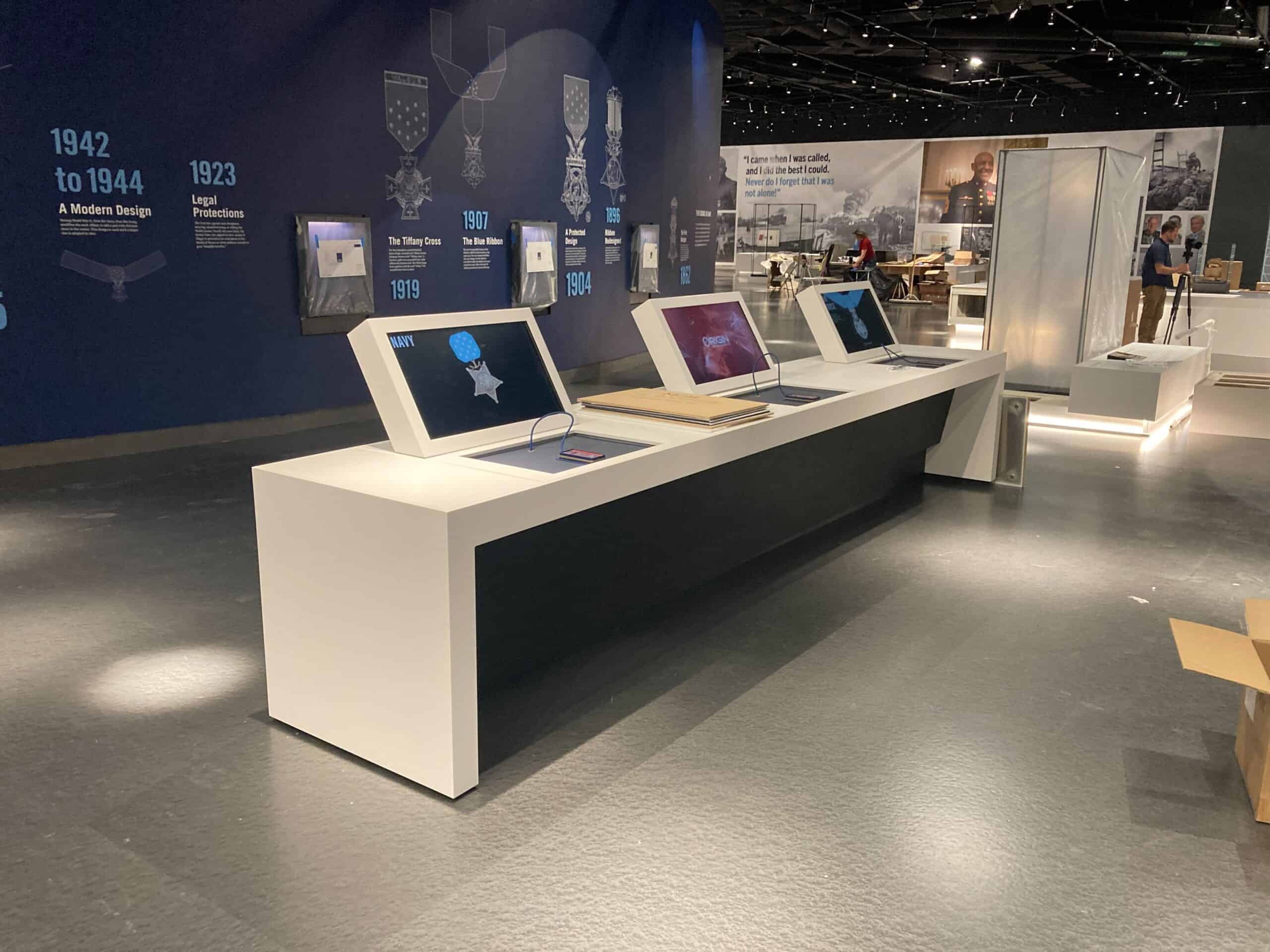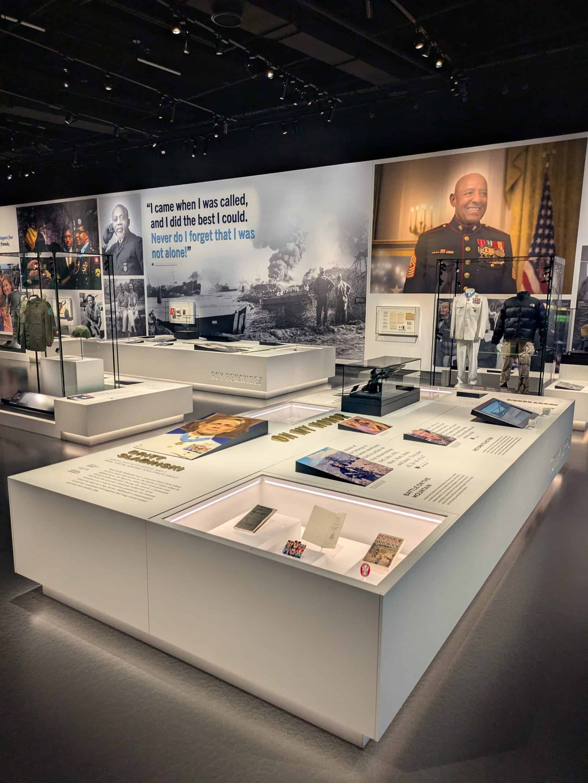 The National Medal of Honor Museum in Arlington, Texas is dedicated to honoring the recipients of the Medal of Honor, the United States’ highest military decoration for valor in action against an enemy force. The museum serves as a tribute to the courageous men and one woman who have earned this prestigious award and offers visitors an opportunity to learn about their stories and sacrifices. The museum features a variety of visitor experiences that showcase Medal of Honor recipients from throughout U.S. history, including military conflicts such as the Civil War, World War I, World War II, the Vietnam War, and more recent conflicts. Exhibits provide a deeper understanding of the medal’s history and significance while also inspiring current and future generations to discover and develop the shared values inherent in every Medal of Honor recipient. kubik maltbie’s work began with pre-fabrication services, working in collaboration with the Museum and design team. kubik maltbie’s scope of work included but was not limited to exhibit fabrication, AV/media hardware integration, engineered casework, graphics production, exhibit lighting integration, base building coordination, and installation.